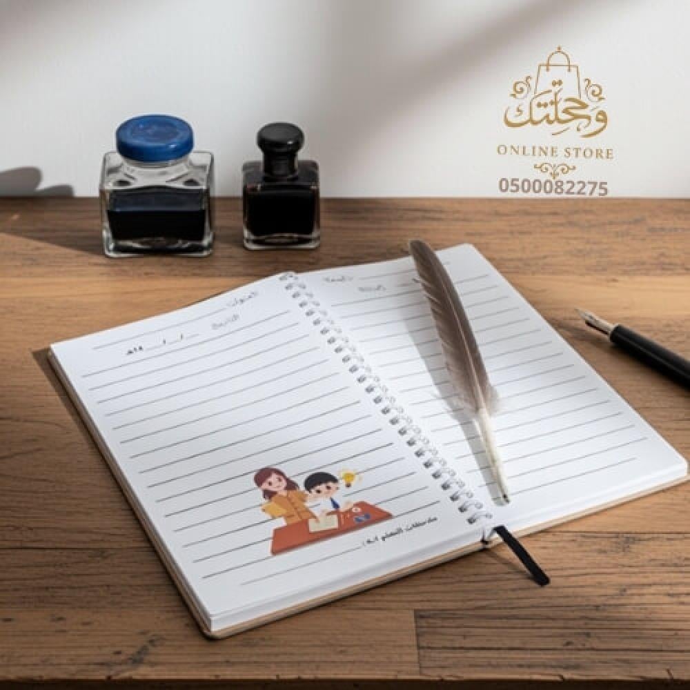 - 🎁 إمكانية إضافة اسم طفلك أو تصميم خاص لجعل الدفتر فريدًا من نوعه، مع خيارات تزيين دفاتر من الداخل تضمن ترتيب المحتوى.