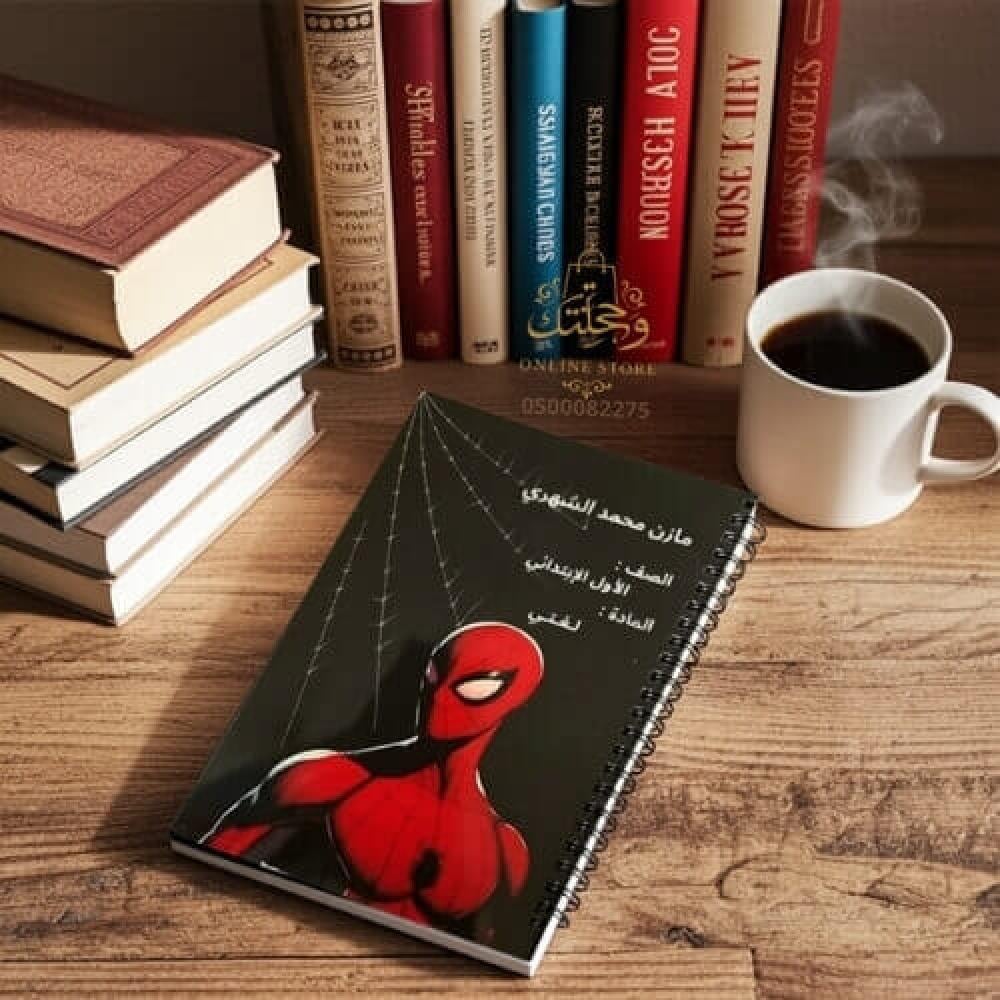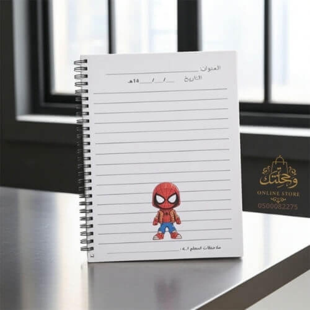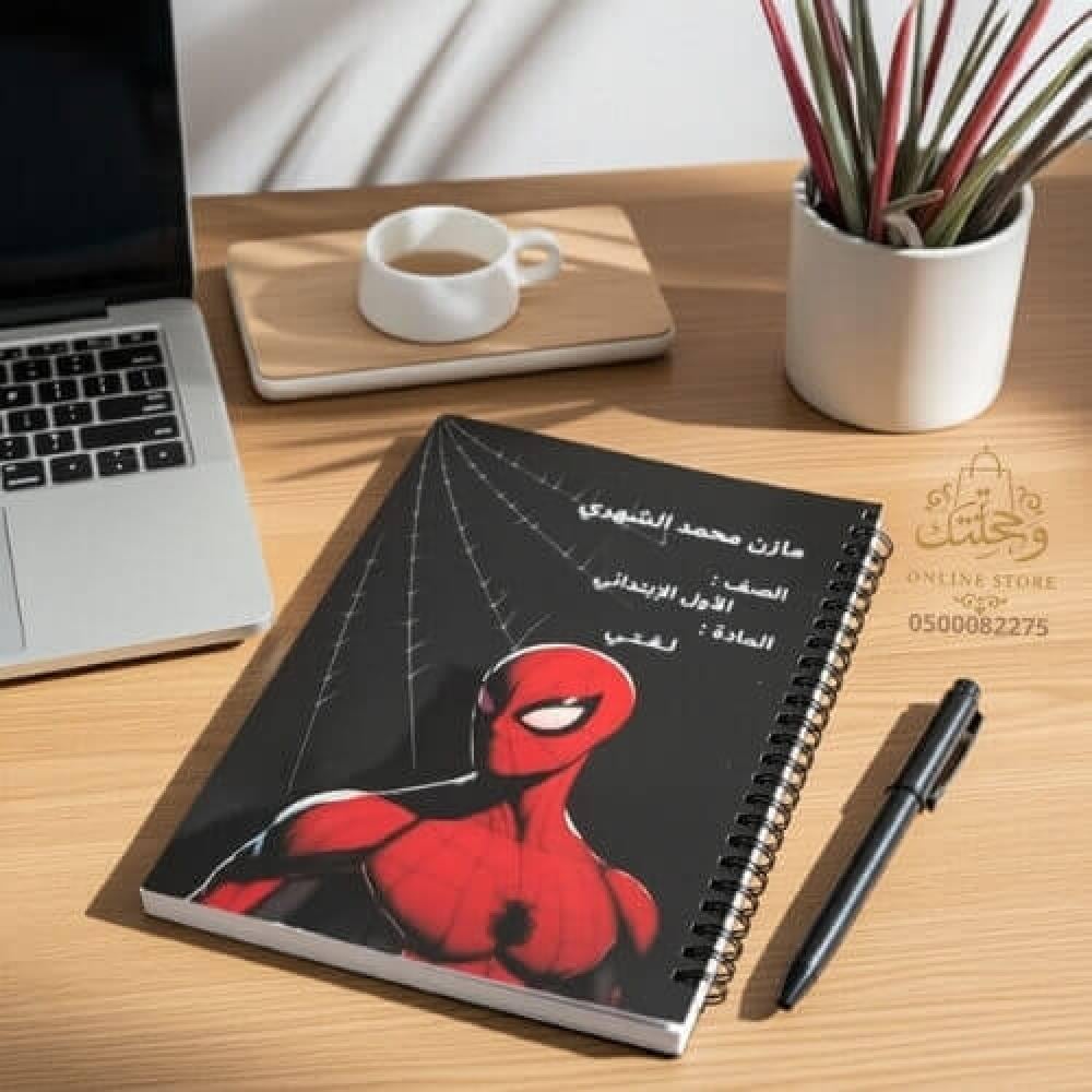 📌 السعر يشمل دفتر سبايدر مان بحجم مناسب مع 40 صفحة. يمكنك زيادة عدد الصفحات من الخيارات.