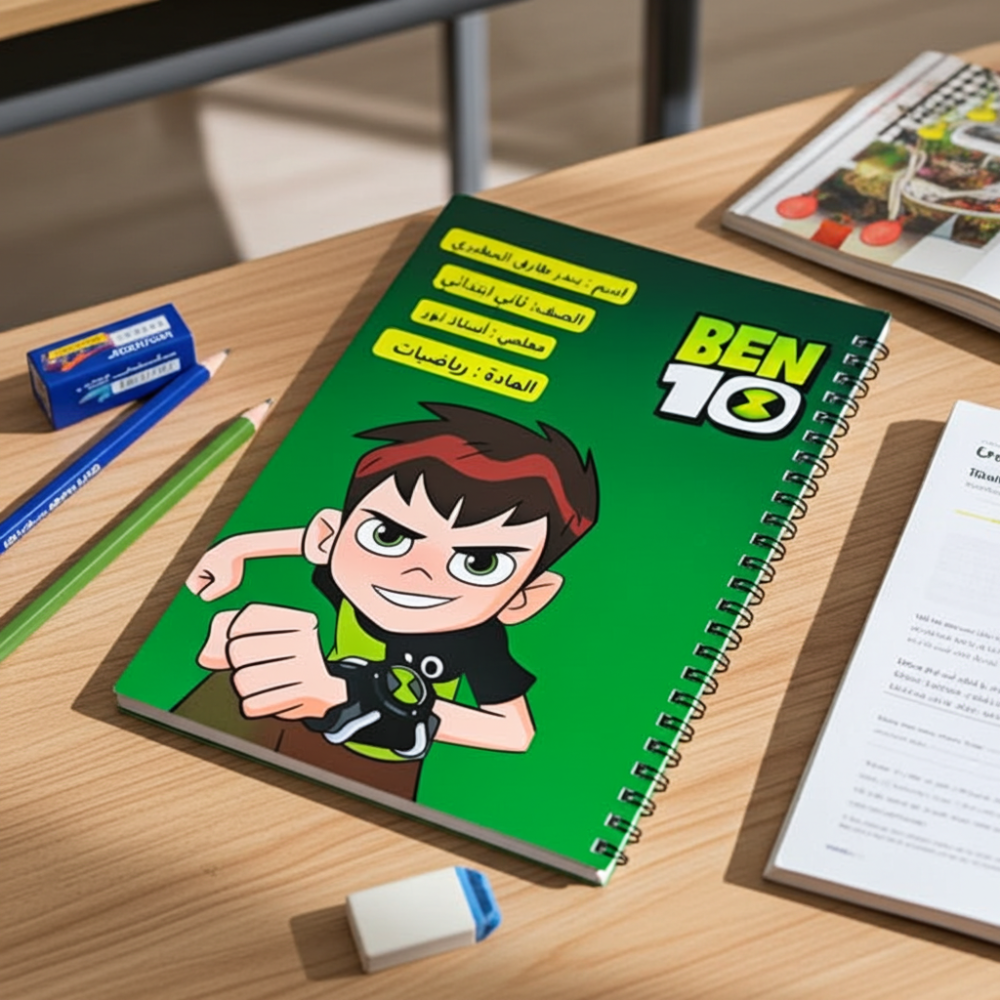 دفتر بي 10 المدرسي هو الخيار الأمثل لمحبي الأبطال والمغامرات! مستوحى من شخصية "Ben 10" الشهيرة، يأتيك هذا الدفتر ليحوّل المهام الدراسية إلى مغامرة مثيرة مليئة بالإبداع 🚀.