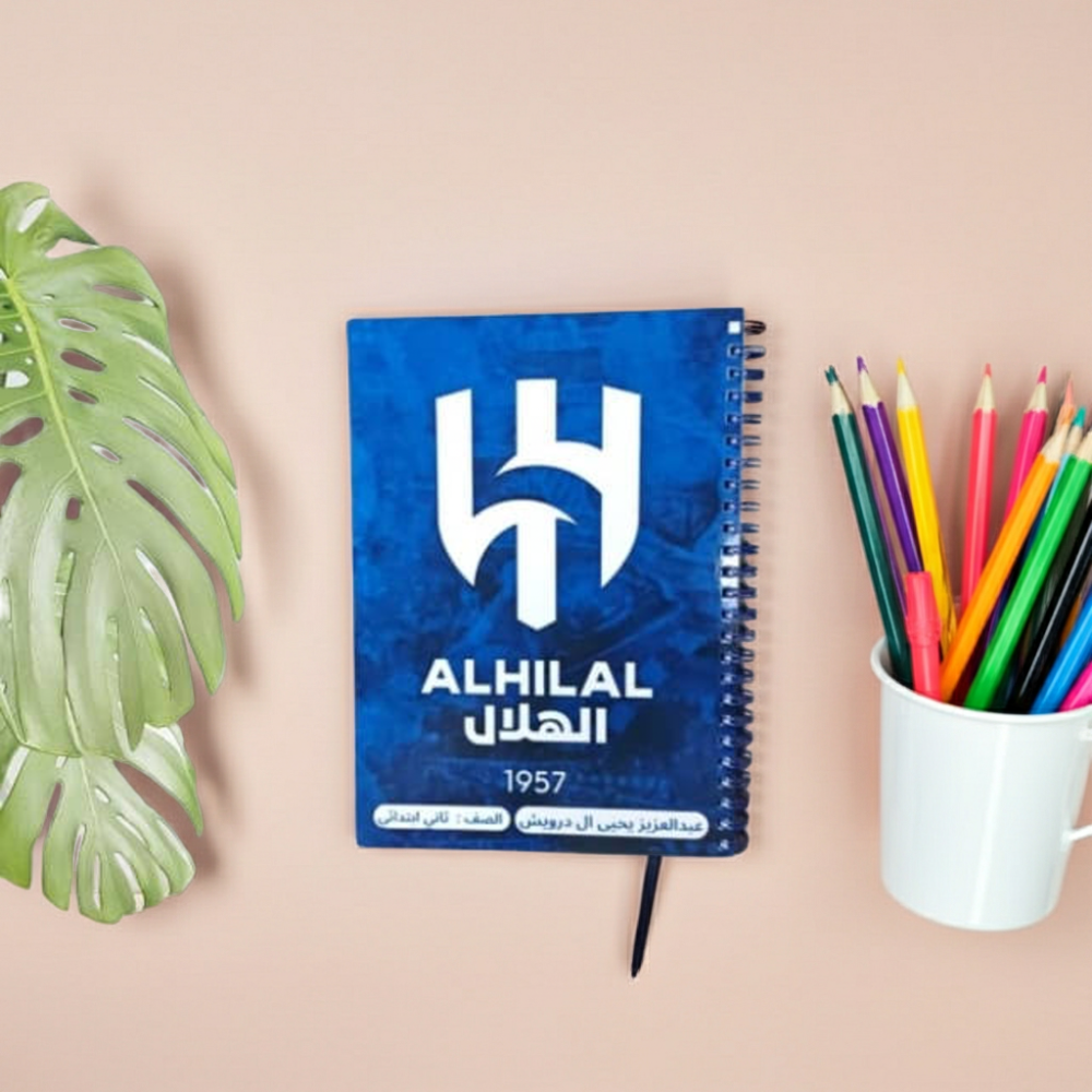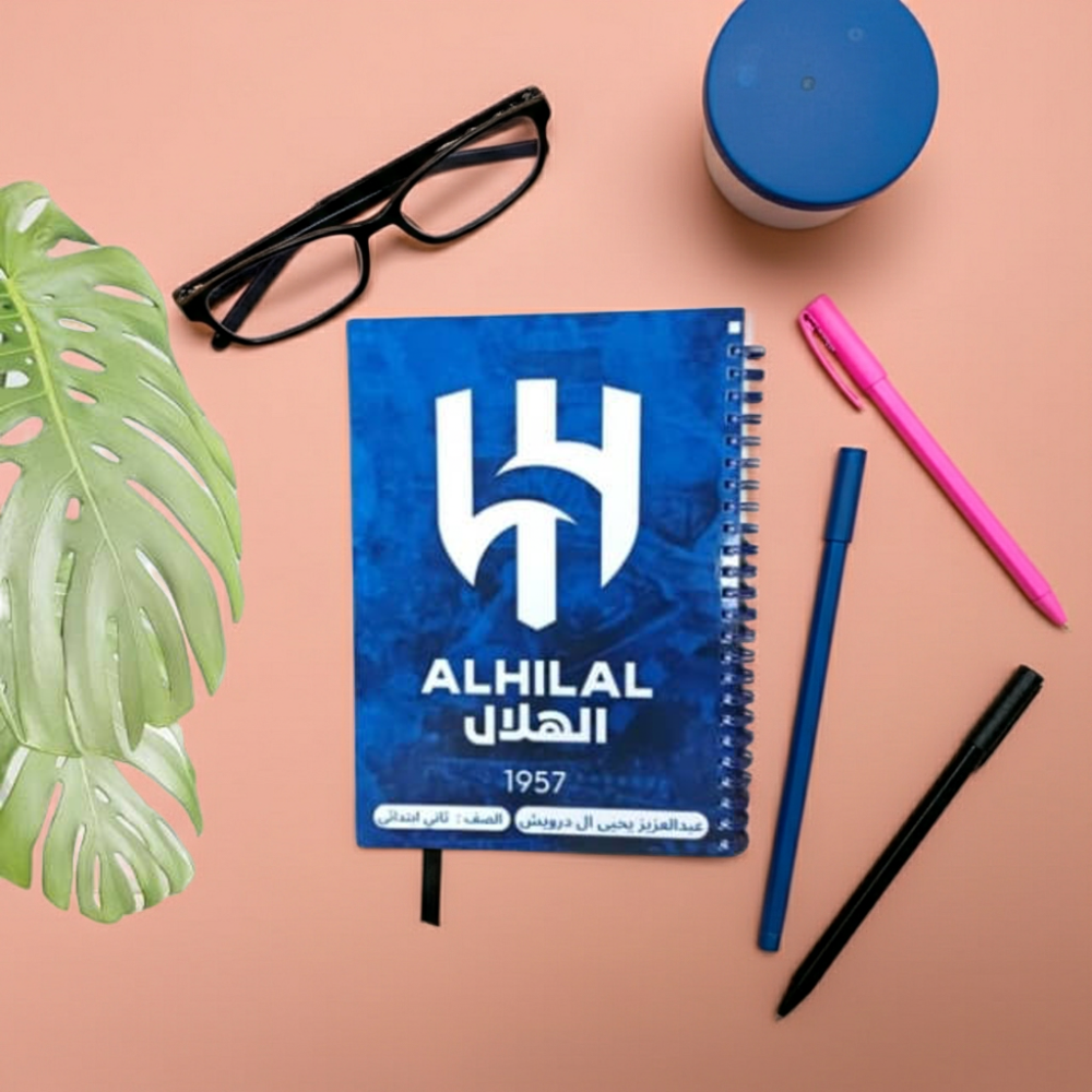 عش أجواء الزعيم مع دفتر نادي الهلال السعودي! 💙صُمّم هذا الدفتر خصيصًا لعشاق نادي الهلال بأسلوب أنيق ومميز يحمل شعار النادي وألوانه الرسمية. مثالي للدر...