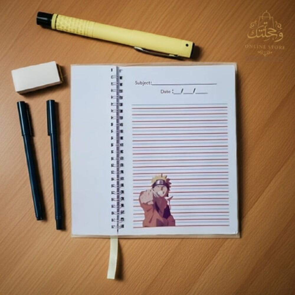 ✨ اجعل دراستك مليئة بالحماس والإلهام مع دفتر ناروتو المدرسي، واستمتع بتجربة كتابة مُرتبة في دفتر مسطر مع رسوم لتزيين الدفاتر تضفي جاذبية خاصة، سواء كنت من محبي دفاتر مدرسية للبنات أو تبحثين عن تزيين الدفاتر المدرسية من الداخل للبنات بطريقة كيوت ومميزة! 💪🌀
