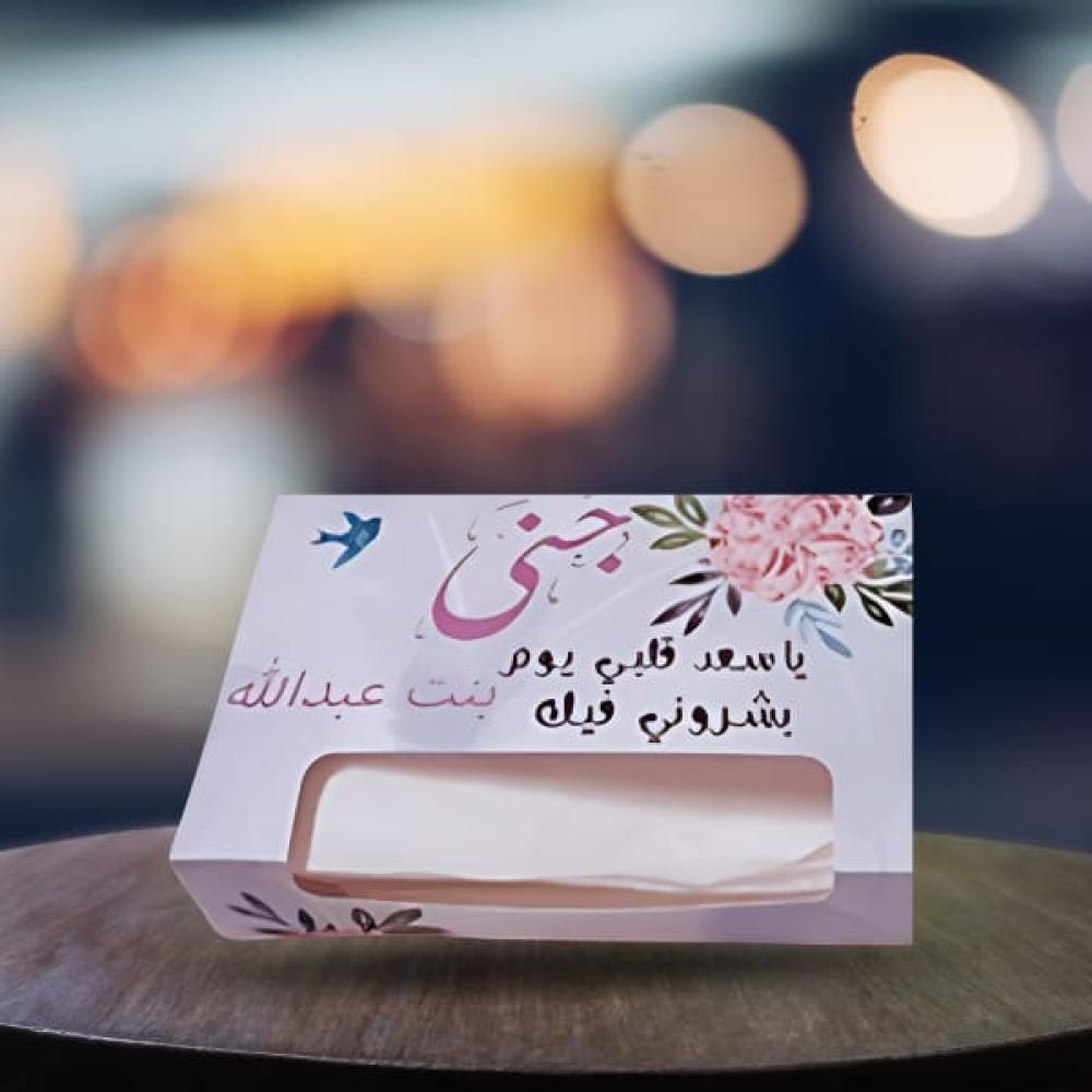 السعر يشمل علبة مناديل أنيقة مع طباعة مخصصة.