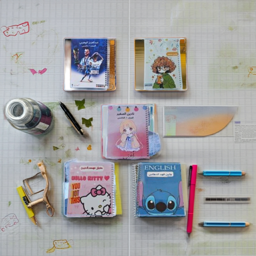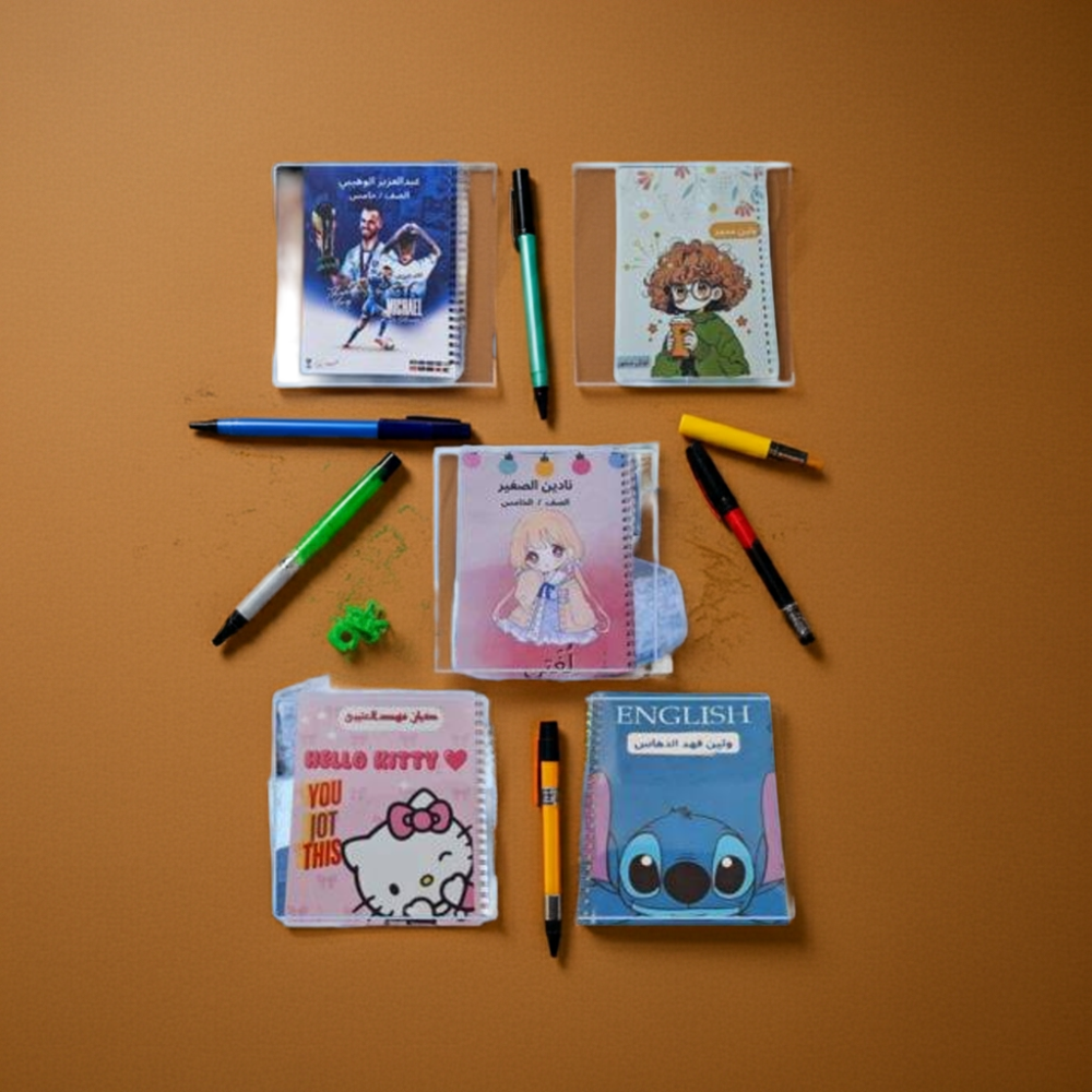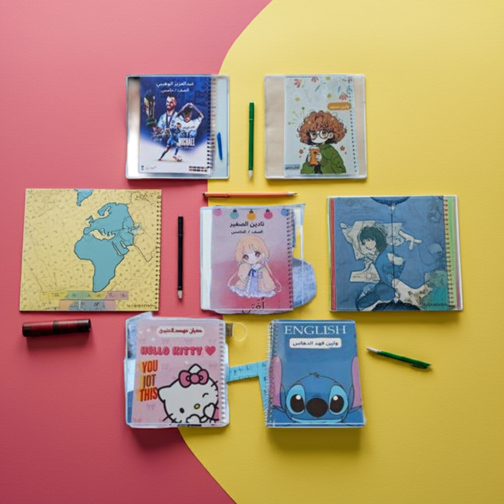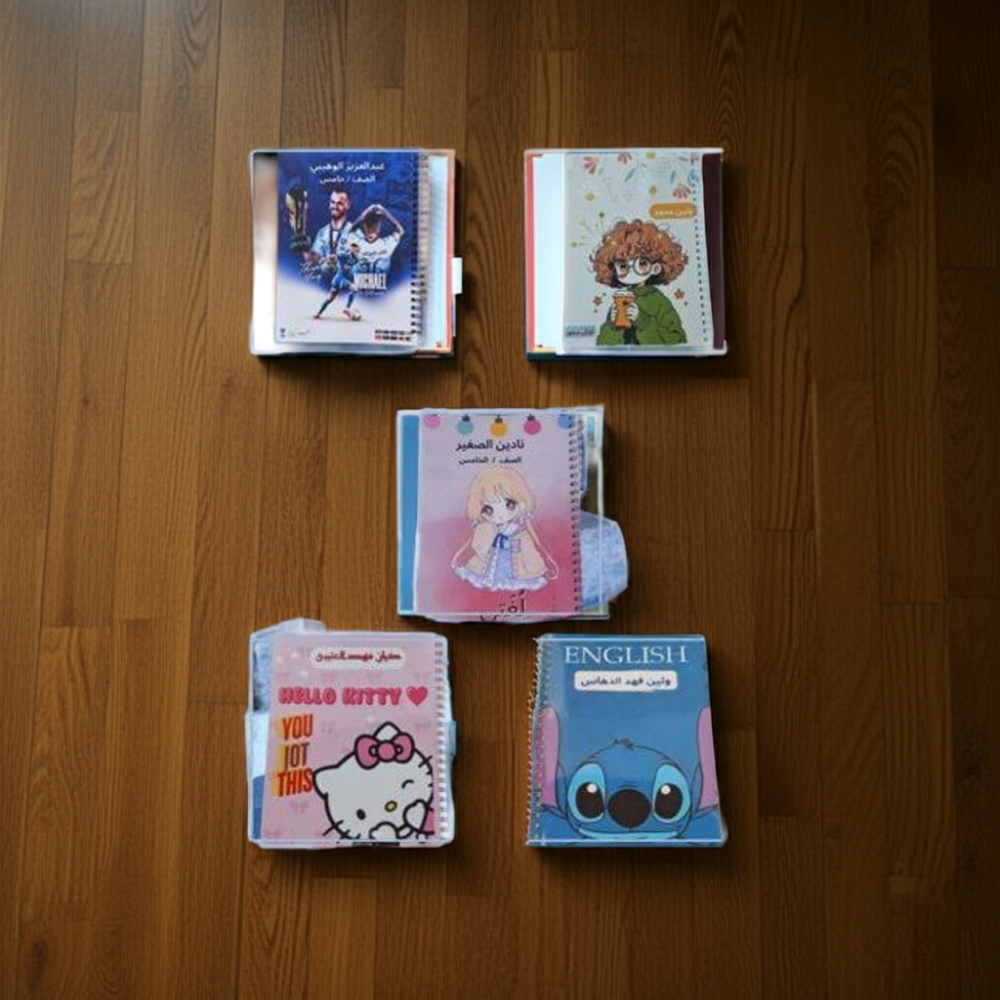احصل على منتج هذه المجموعة المميزة التي تحتوي على 5 دفاتر أنيقة، كل دفتر منها يضم 40 صفحة مطبوعة من الداخل والخارج، مع إمكانية تخصيص الغلاف باسم طفلك أو إضافة تصميم خاص يُعبّر عن شخصيته الفريدة. 🎨💖