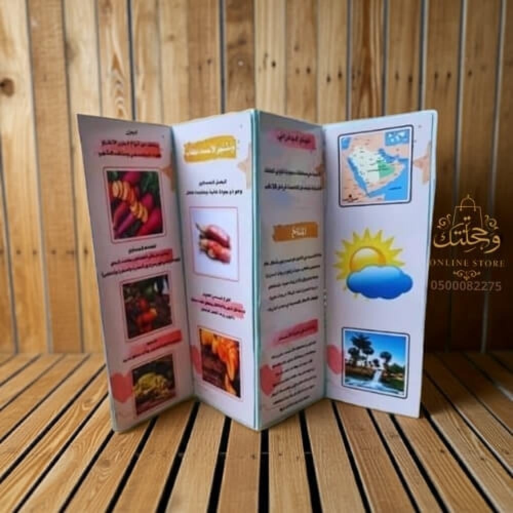 تُعد المطوية وسيلة بصرية ممتعة تساعد الطفل على فهم خيرات وطنه بأسلوب مبسّط وجذاب، يمكن تخصيصه بالكامل ليناسب احتياجك الدراسي أو المدرسي.
