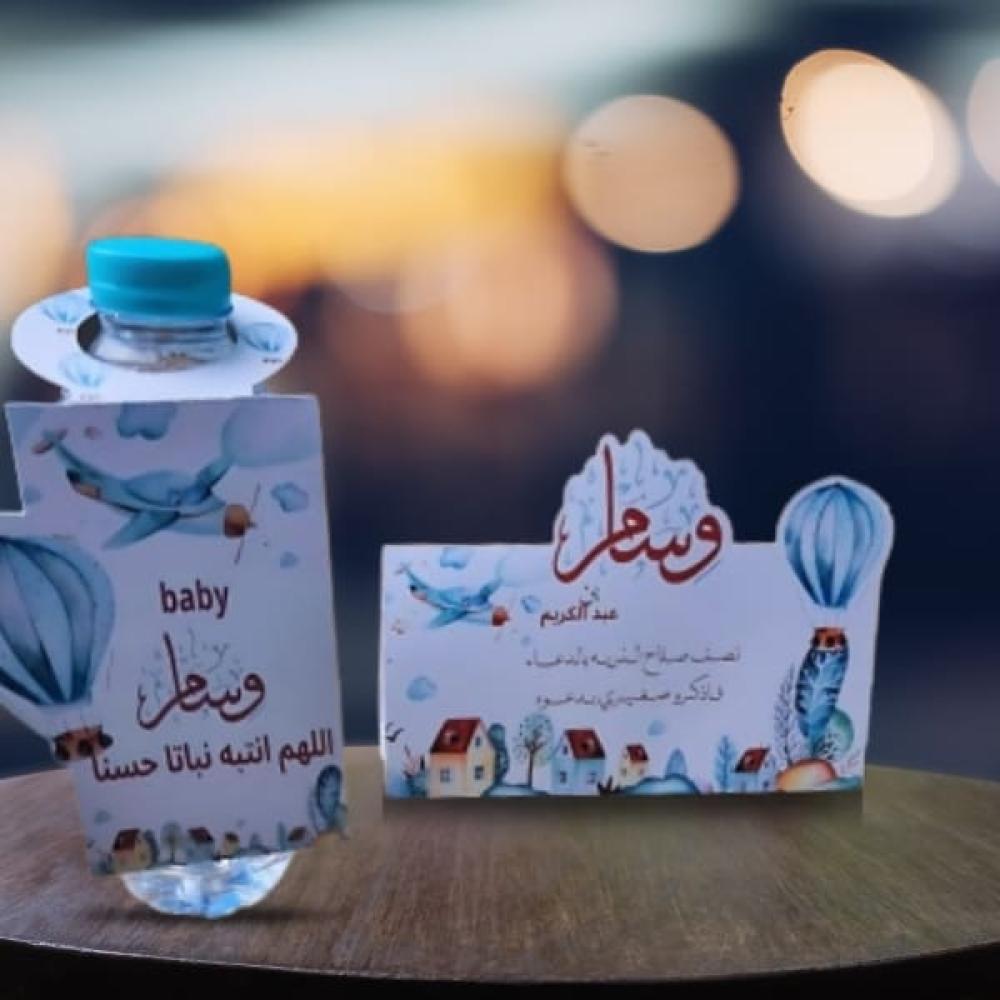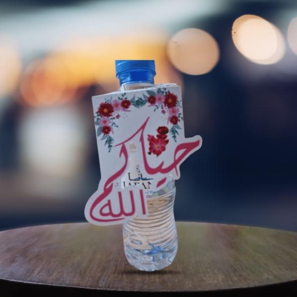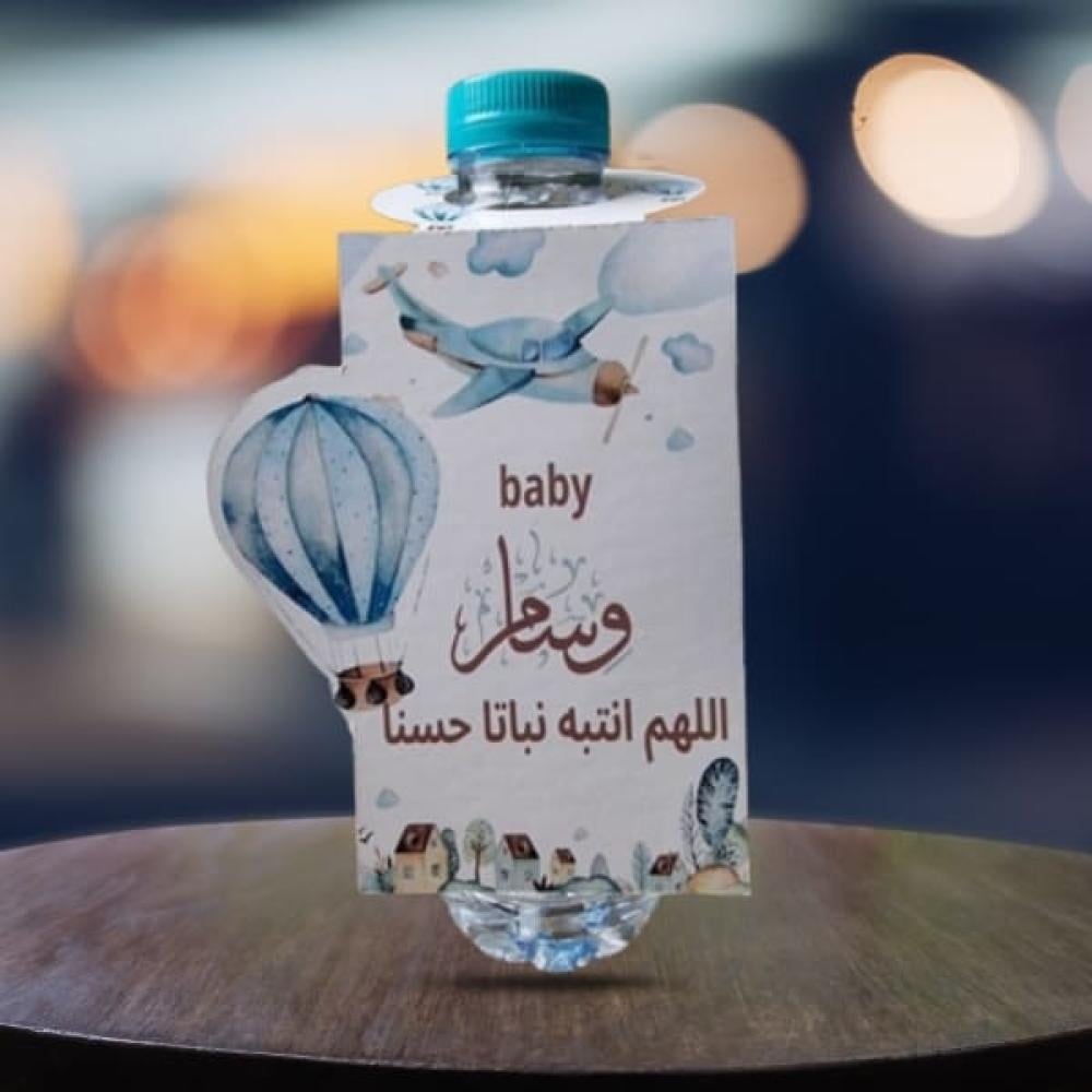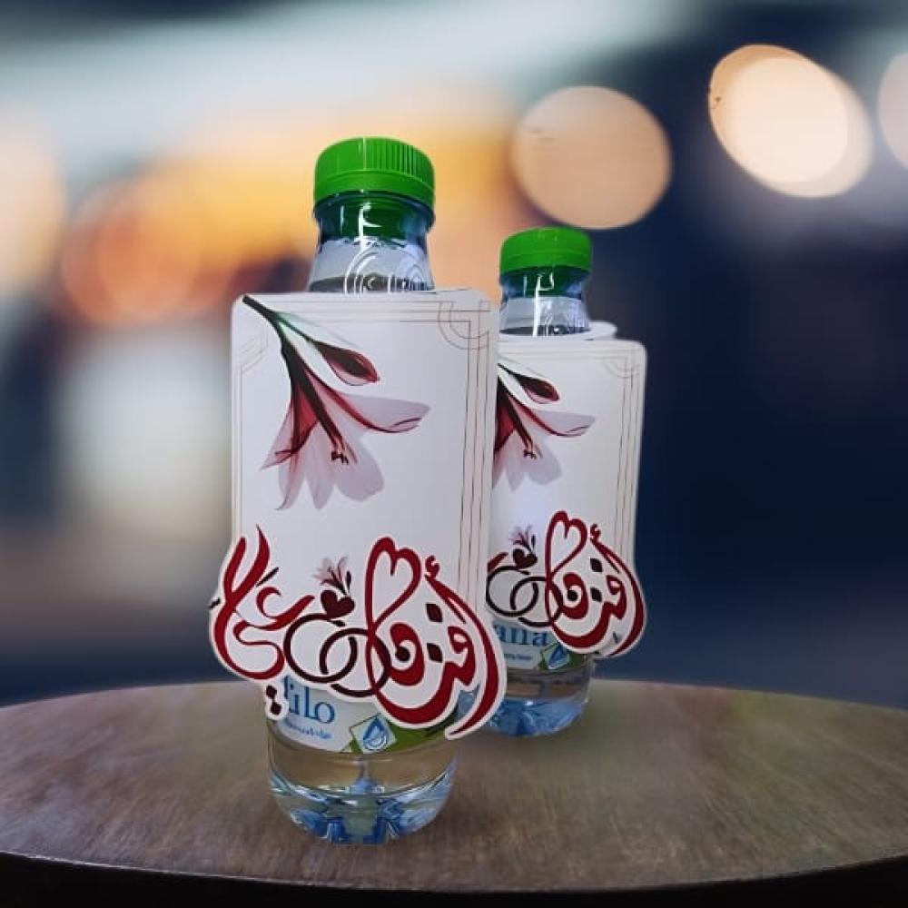امنحي مناسبتكِ لمسة شخصية فريدة مع تاق مويا القابل للتعديل بطباعة عالية الجودة، الذي يحوّل زجاجات الماء إلى توزيعات أنيقة تُضفي بهجة وسرورًا على ضيوفك: