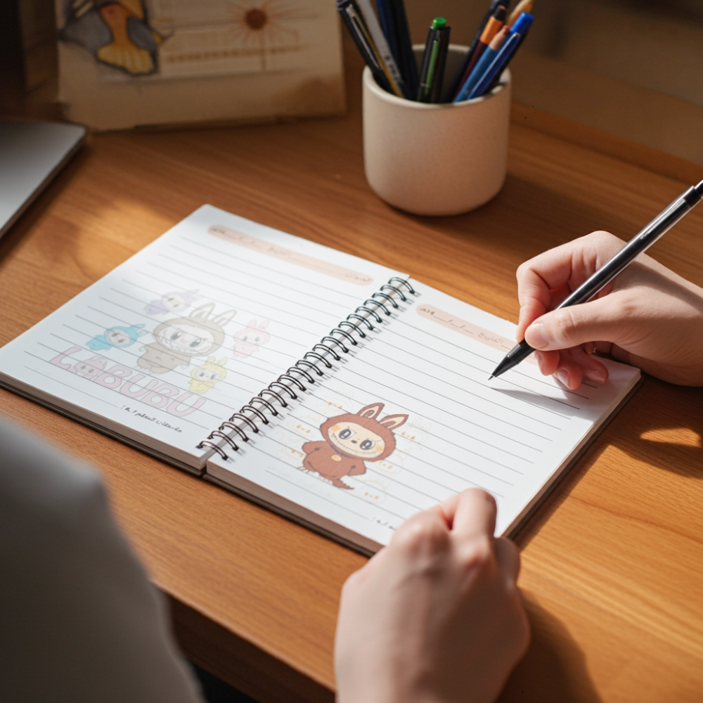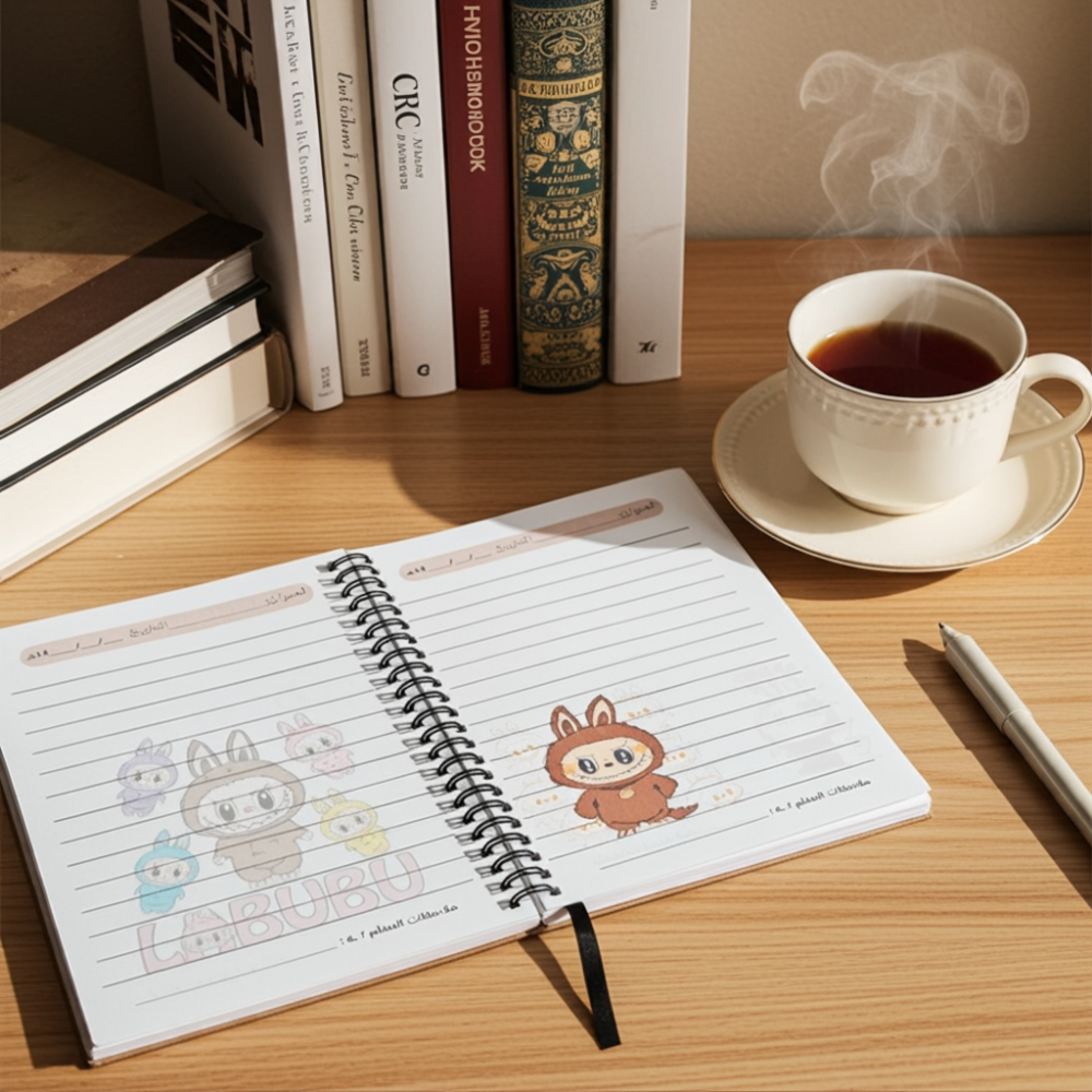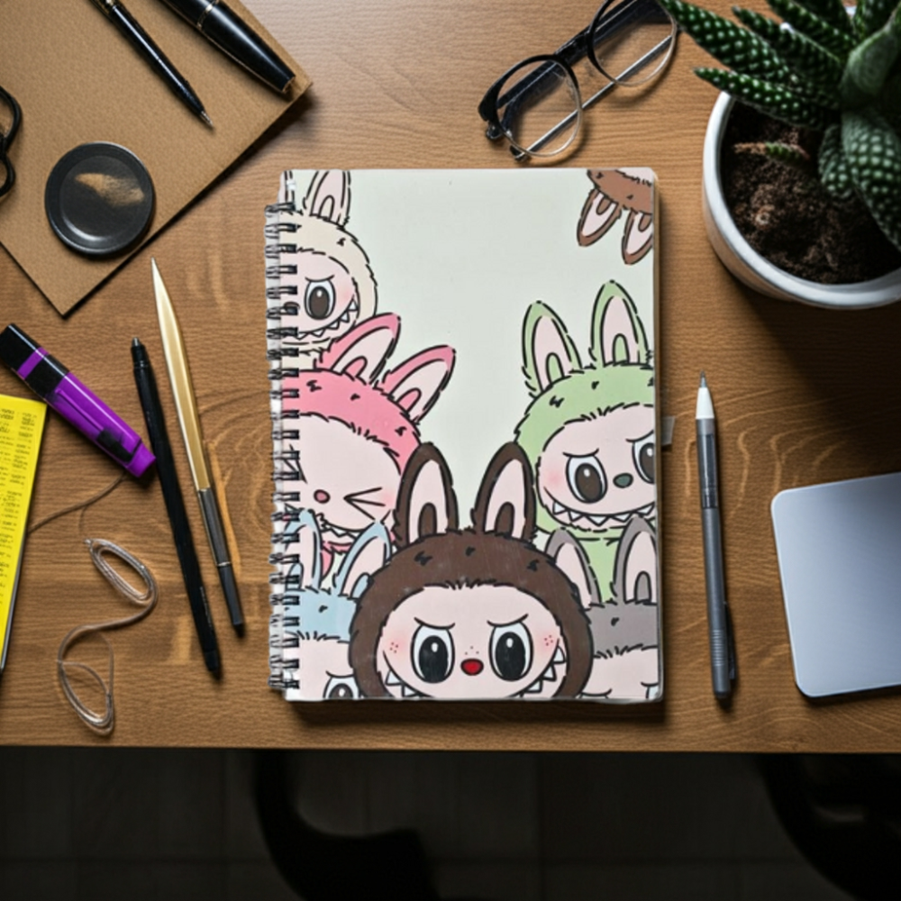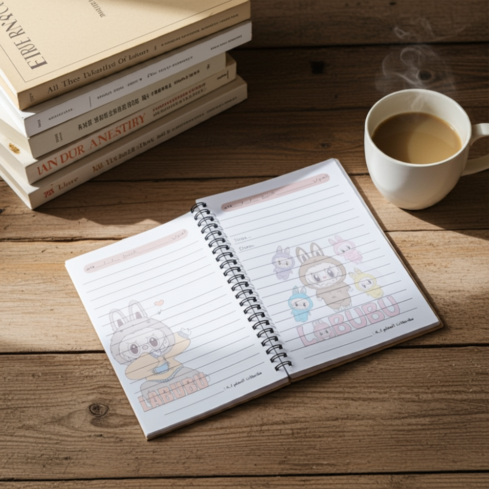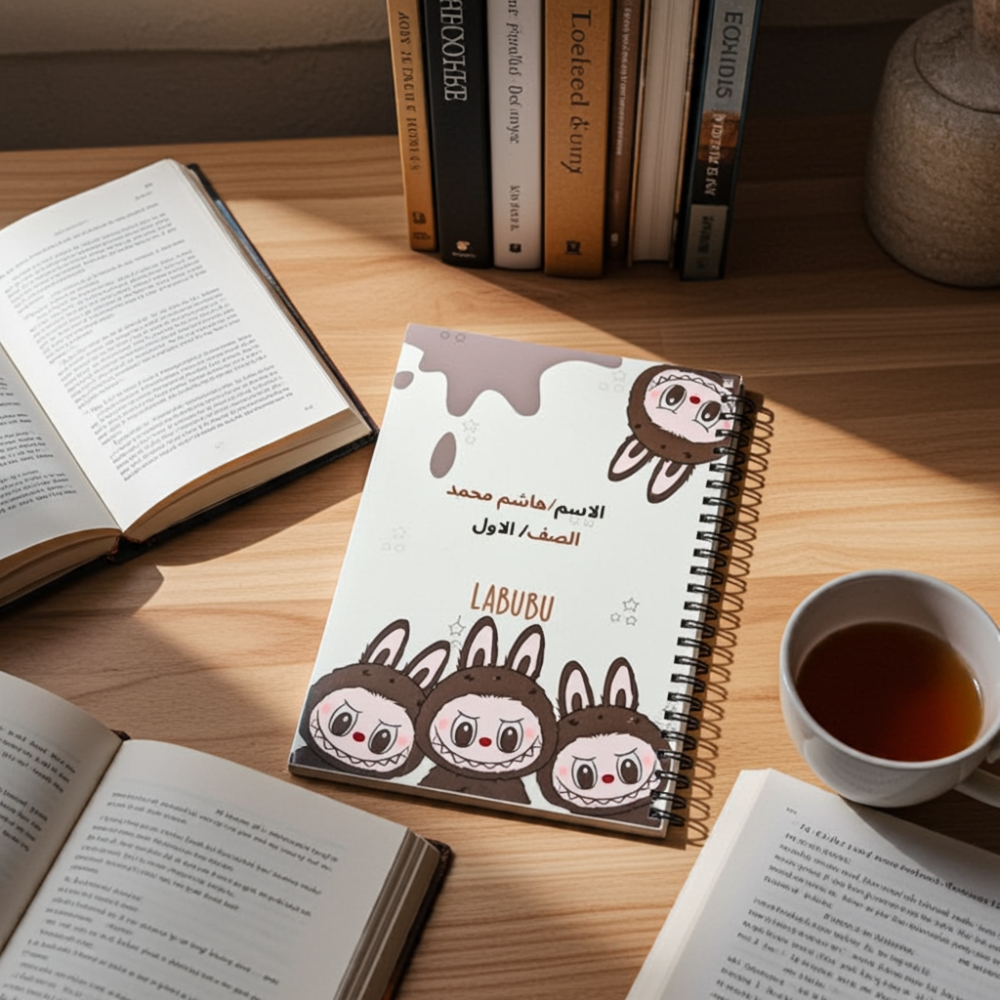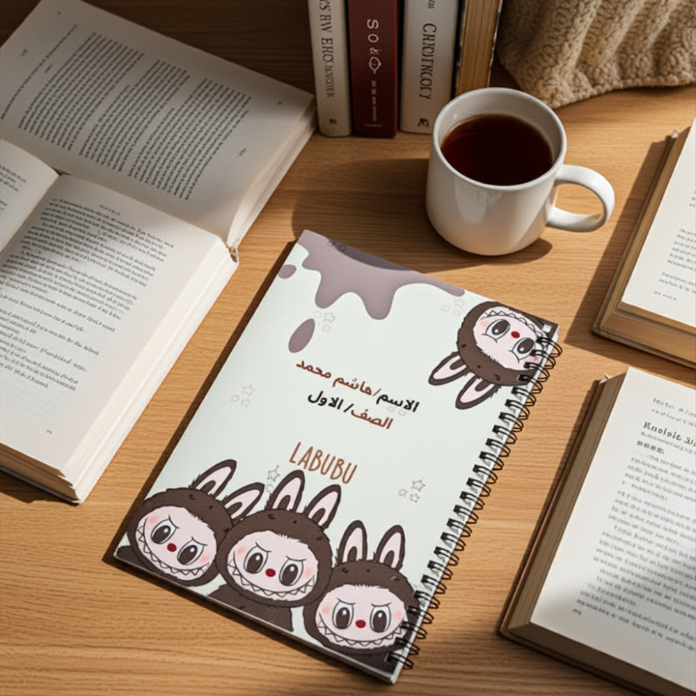 📚 دفتر لابوبو يجمع بين التصميم الجذاب للأطفال وتنظيم الواجبات، مناسب للبنات والأولاد بحجم A5 سهل الحمل في الحقيبة المدرسية. يمكن تعديل الاسم، الصف، المادة، السنة الدراسية، والفصل الدراسي.