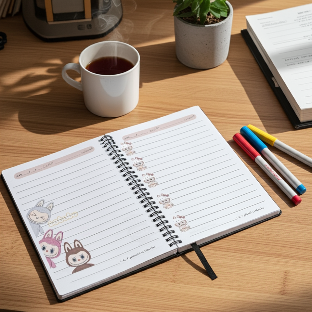 📌 السعر يشمل دفتر لابوبو بحجم A5 مع 40 صفحة. يمكن زيادة عدد الصفحات من الخيارات.