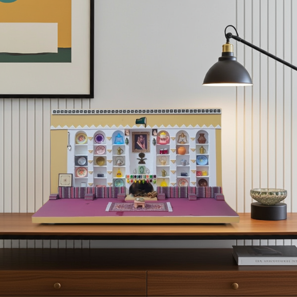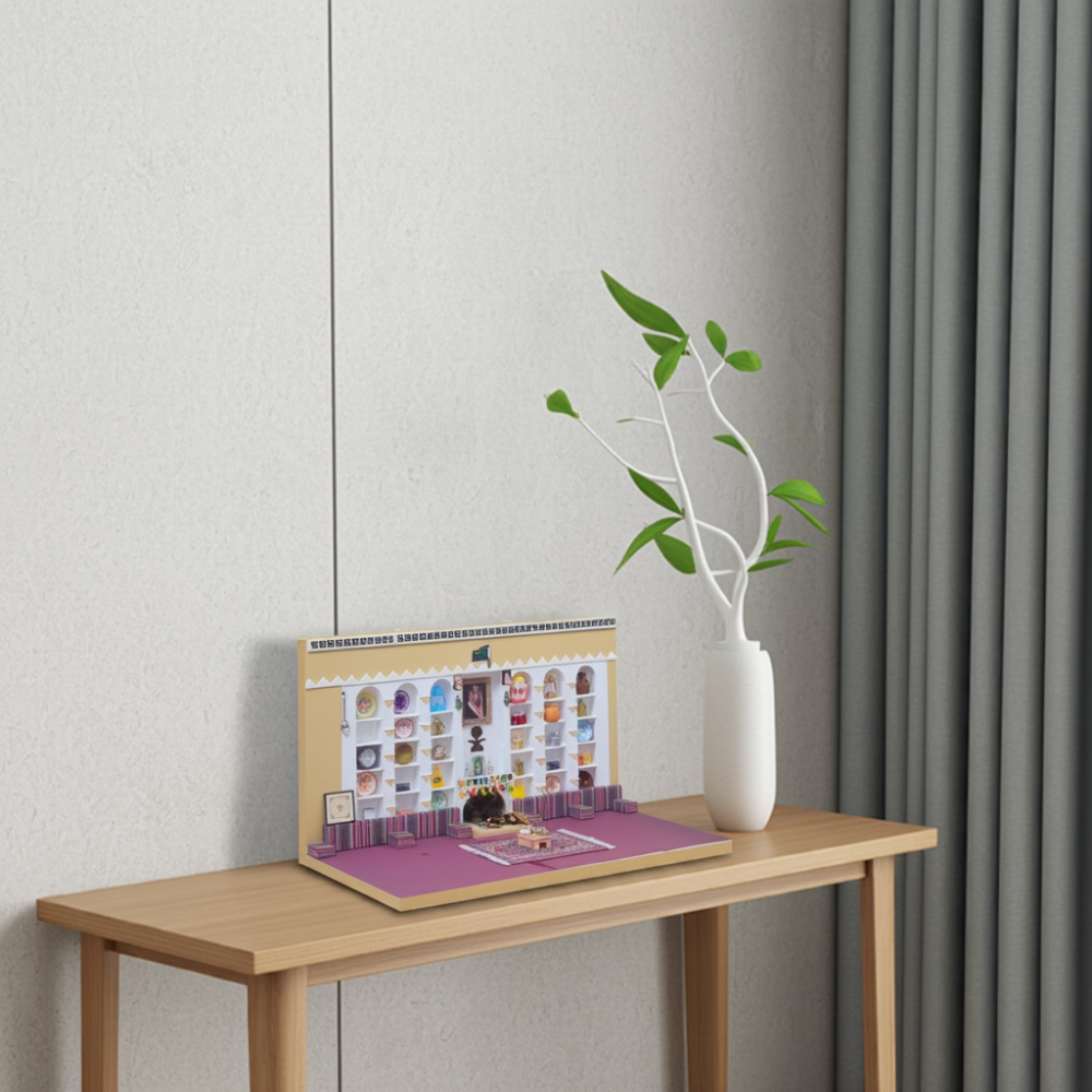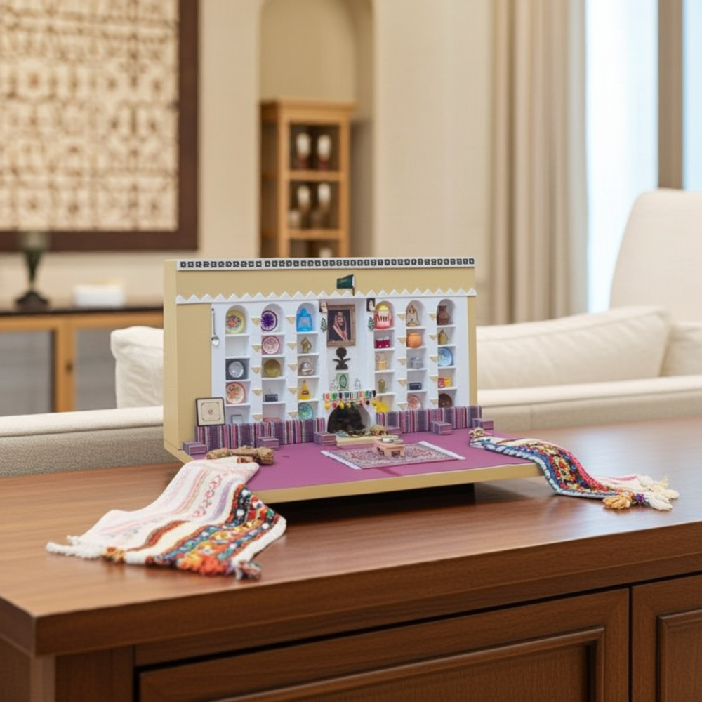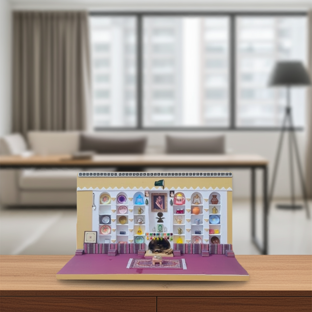 - تصميم تراثي أصيل: يعكس المجسم تفاصيل المجالس التراثية بدقة، مما يجعله قطعة فنية فريدة.