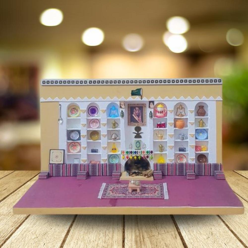مجسم واجهة مجلس تراثي بتفاصيل دقيقة وصورة الملك عبد العزيز 🇸🇦