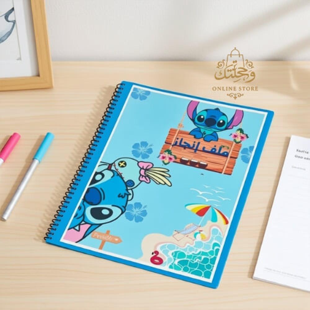 ملف إنجاز شخصية استيتش هو منتج يعرض للأطفال تجربة ممتعة وعملية لتوثيق إنجازاتهم اليومية. بفضل تصميمه المطبوع حسب الطلب، يتحول إلى قطعة شخصية مميزة تساعد الطفل على حفظ واجباته وشهاداته ورسوماته بكل حب وحماس.