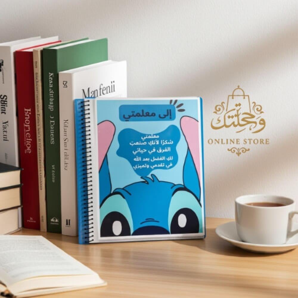 مع ملف إنجاز شخصية استيتش، سيحصل طفلك على ملف ممتع، عملي، ومنظم يساعده على التميز الدراسي وحفظ إنجازاته بطريقة أنيقة. اطلب الآن ملف إنجاز مطبوع حسب الطلب من متجر واجهتك للهدايا وامنح طفلك تجربة تعليمية ممتعة لا تُنسى.
